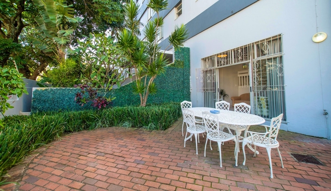 Ipanema Beach 10 is a self catering apartment with two bedrooms (one bedroom has sea views), two bathrooms upstairs, a fully fitted kitchen, lounge and dining room. It is serviced daily, has full DStv, free Wi-Fi connection and is air-conditioned. Bath towels are provided. The unit has a lovely patio area with braai facilities. The complex has a swimming pool and there is a gate to the side leading to the beach which is about 50m away.
