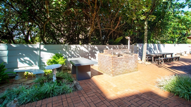 The unit has a lovely patio area with braai facilities. The complex has a swimming pool and there is a gate to the side leading to the beach which is about 50m away.