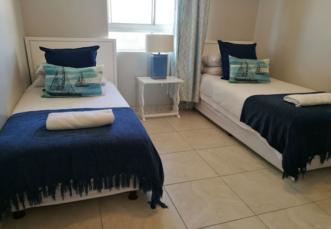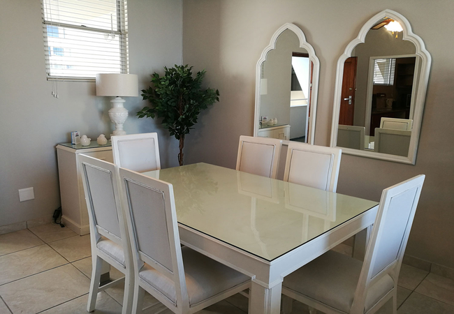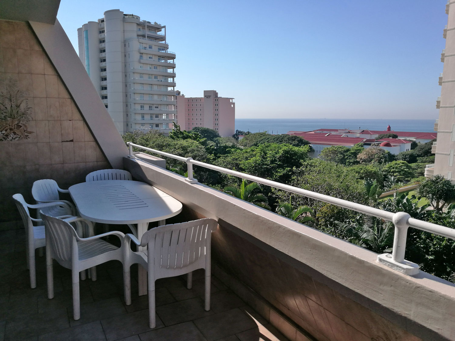The lounge, dining room and kitchen are all on the same level and the unit boasts a wonderful sea view. The unit is serviced daily, has DStv, free Wi-Fi and bath and beach towels are provided.
