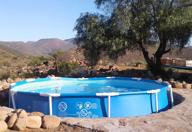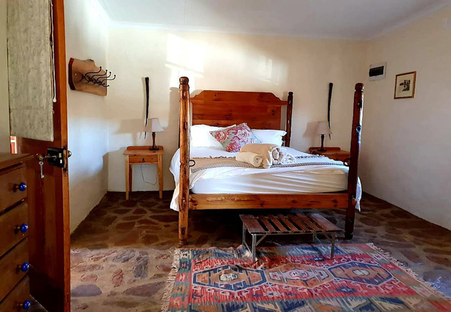 Ironstone Cottage is a self catering holiday cottage with two double rooms, each with their own bathroom. The main cottage has a fully equipped kitchen which includes a dishwasher. The cottage has Wi-Fi, air conditioning and a fireplace in the living area. There is limited cell phone reception at the cottage. There is an outdoor firepit and a plunge pool. Please note that is it necessary to have a 4x4 for access to the cottage. A 4x4 /high clearance definitely advisable as private access is via a dirt road dipping through a dry river bed. Facilities include Air Conditioning, FREE Wi-Fi, Fireplace, Firepit and a Plunge Pool.