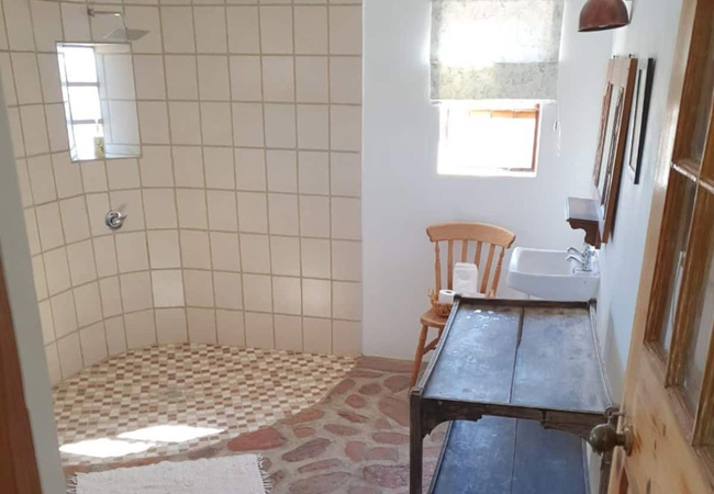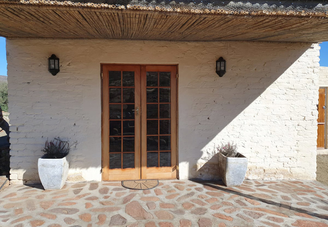 The cottage is a short distance from the 200 year old Cape Dutch farmhouse and wagon house (currently being restored) and faces up a valley with a firepit overlooking the kloof. The cottage is a former farm labourer's cottage and has been fully renovated - the gardens continue to be a work in progress. There is access to hiking and mountain biking trails directly from the cottage. Please note that it is a Karoo farm and can experience extremes of weather conditions. There is a resident bat colony which is housed in an external bat house - they are an endangered species and keep the mosquito and insect population to a minimum, however please do not be surprised to see one flying inside if one is not careful to keep doors and windows closed at night.