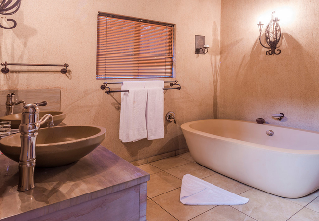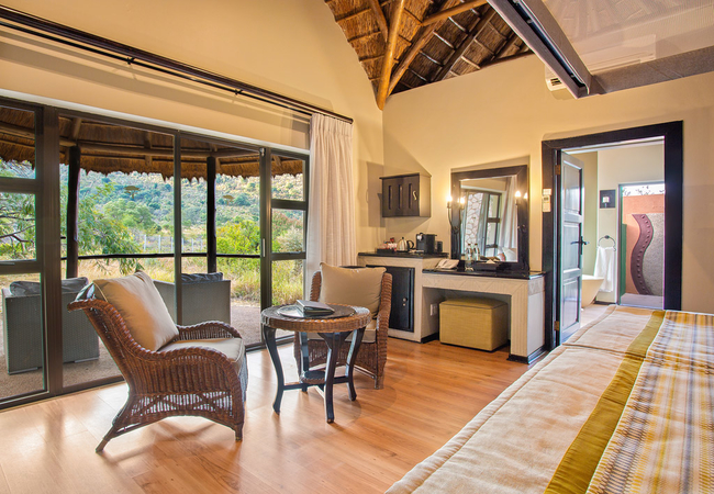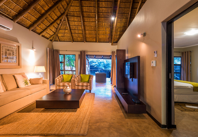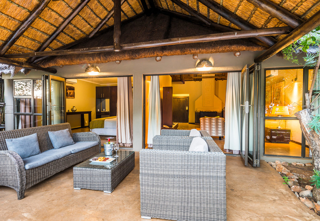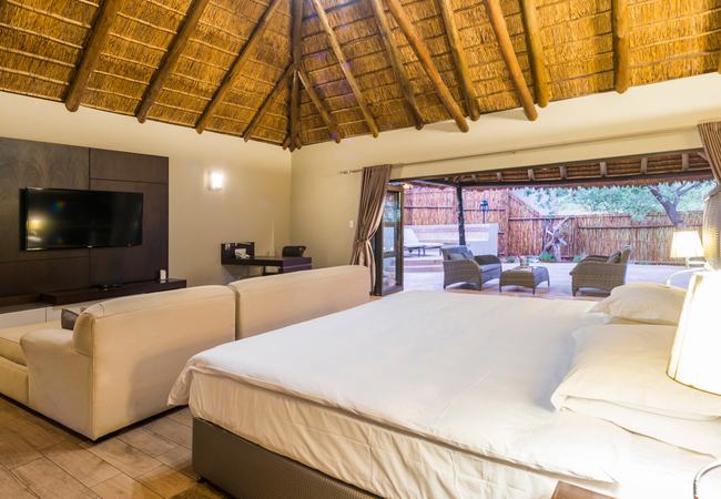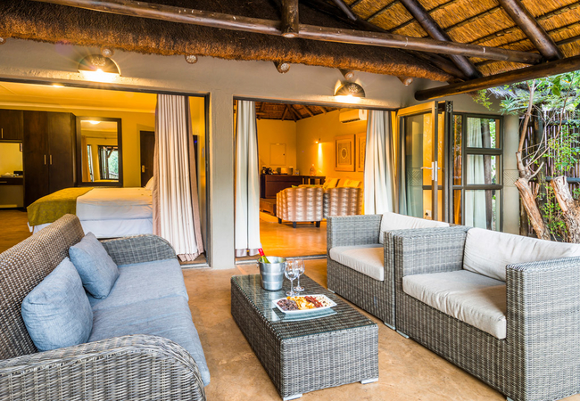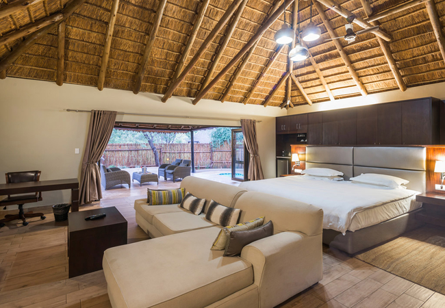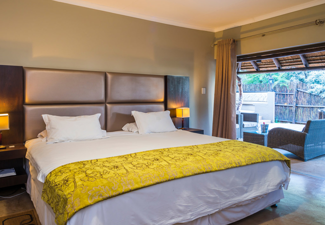 Kitted-out with all the luxury you need along-side all the usual amenities. The Executive Suite features a King-size bed, covered with luxurious linens and his and hers en-suite bathrooms fitted with a bath, shower, toilet and basin. You can bask in the sun and your African surroundings from your private patio, or relax in your private plunge pool. Room facilities include air conditioning, a coffee / tea station, a TV with selected DStv / satellite channels, safe, hair dryer, complimentary toiletries and daily housekeeping.