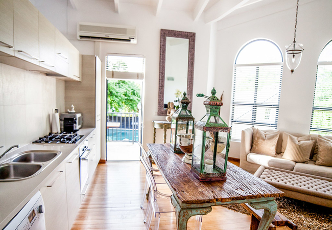 Situated uniquely in central Franschhoek Village in the heart of the Cape Winelands lies The Ivy Apartments, a collection of 9 luxury self catering one and two bedroom apartments. The apartments are fitted with bamboo flooring, air conditioning, modern integrated appliances and every convenience you could require.