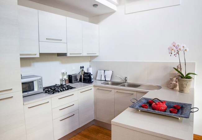 All apartments are fully equipped, and the bathrooms have luxurious towels and toiletries available for each guest. The apartments are serviced each day, and there is a laundry on-site should guests wish to have larger items laundered.