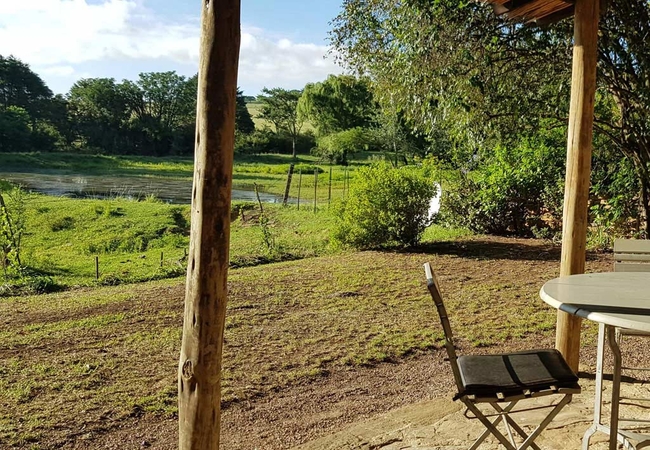 Jacaranda at Wyford Farm can accommodate two guests and is furnished with a double bed in the main room. The bathroom is fitted with a shower, toilet and basin. Towels are provided. The cottage has a kitchenette which is well equipped with a fridge, microwave, two plate mini stove, kettle and toaster. All crockery and cutlery is provided. The cottage, which is comfortably furnished and has a fireplace for the chilly winter months opens to a garden with views of a dam.