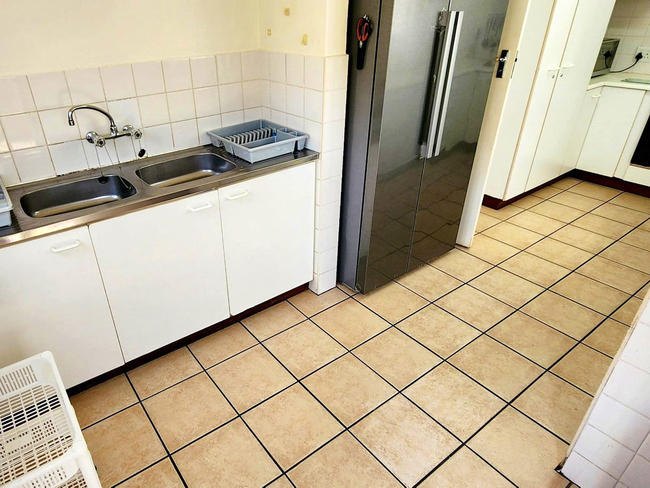 The kitchen is fully equipped with a fridge-freezer, stove, oven, microwave, cutlery and crockery, and tea and coffee-making facilities. For added convenience, a washing machine and tumble dryer are available. The living area features comfortable seating, a dining table, and a TV with a DStv decoder, providing both relaxation and entertainment.