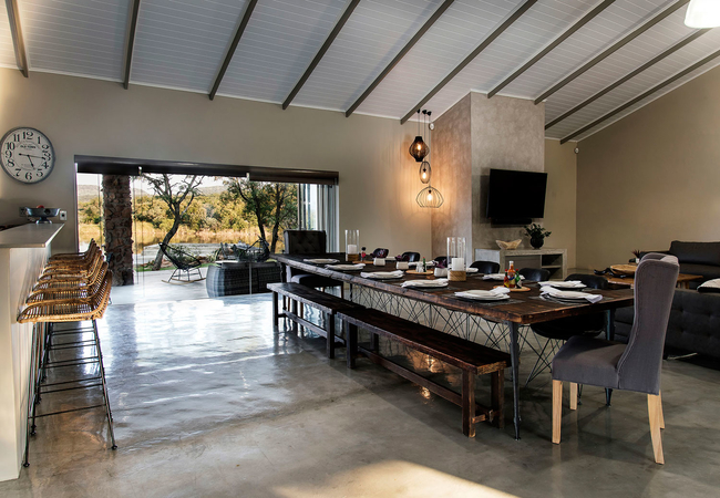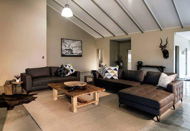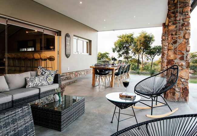 There is a large patio area with patio furniture and braai facilities. There is a big dam in front of the lodge with plenty of game and birdlife.