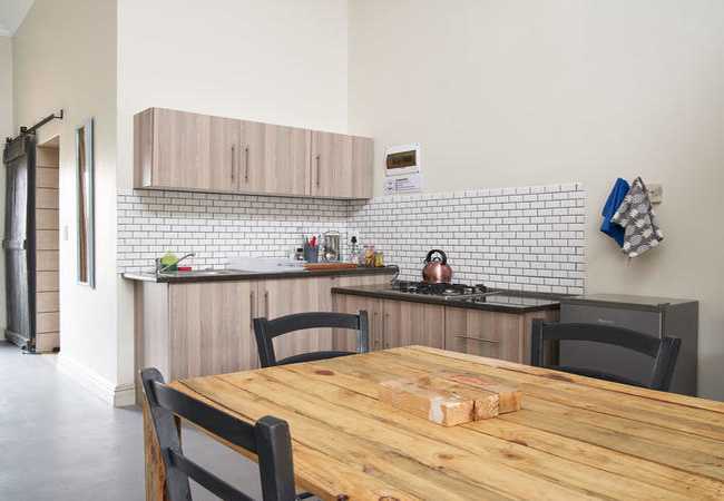 This chalet is furnished with a King size bed and two three-quarter beds with en-suite bathroom with shower and a bath. The rooms have a kitchen with all basic kitchen amenities, crockery, cutlery, a gas stove, refrigerator and a gas geyser. Serviced daily except Sundays and public holidays.