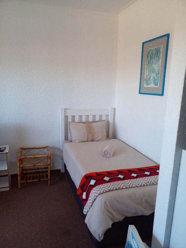 Studio/ Bachelor flat with a double bed and a small single bed (1 child 6 years and under), small lounge area, open plan kitchen, and bathroom with bath/ shower. WiFi, DSTV. Non-smoking only. All our flats are fully furnished, and have a microwave, stove with oven, fridge, crockery, cutlery and utensils, kettle and toaster, ironing board, heater and fan, and TV. Linen and towels are provided. Complimentary tea / coffee. We also have available irons and DVD players. We provide both smoking and non-smoking rooms.