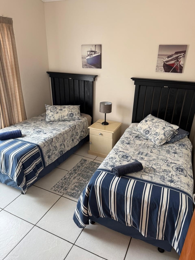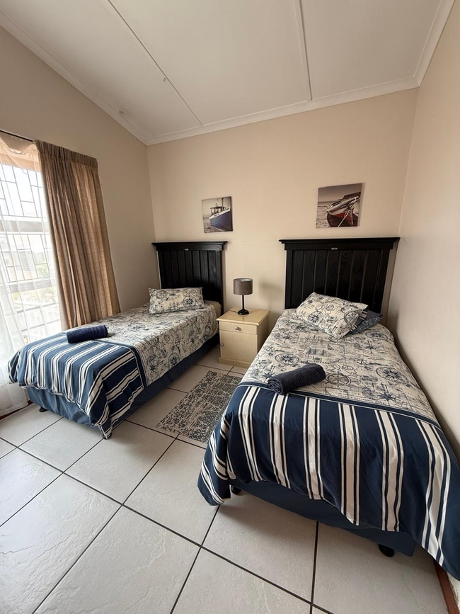 J'Bay Tides is a delightful three-bedroom, self-catering double-storey townhouse, perfectly situated within walking distance of local amenities, entertainment, and vibrant attractions. The home comfortably accommodates up to six guests, with two bedrooms featuring double beds and a third bedroom furnished with two single beds. Additionally, a double sleeper couch in the lounge provides extra sleeping space if needed. Linen is provided, and a cleaning service is available upon request for added convenience. The townhouse features two bathrooms, one of which is en-suite, ensuring privacy and ease for guests. A sundeck with a braai area offers a fantastic spot to unwind or enjoy a meal outdoors. The fully equipped kitchen includes all essential appliances, such as a fridge, microwave, and washing machine, along with all necessary crockery, cutlery, and utensils. The dining room and lounge create a welcoming space for relaxation and entertainment, complete with a TV, DSTV, and a fan for comfort. The property also includes a double garage, secure parking, and peace of mind for your stay. Whether you're visiting for leisure or adventure, J'Bay Tides has everything you need for a comfortable getaway.