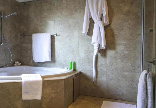Luxury Suite is furnished with a Queen-size bed. The en-suite bathroom is fitted with a bath, shower, toilet and basin. Each room has a tea and coffee station, Wi-Fi, air-conditioning, bathrobes, a desk, safe and satellite TV. Breakfast is available.