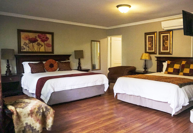 The comfortable Family Room is furnished with two Queen-size beds. The en-suite bathroom is fitted with a bath, shower, toilet and basin. Each room has a tea and coffee station, Wi-Fi, air-conditioning, bathrobes, a desk, safe and satellite TV. Breakfast is available.