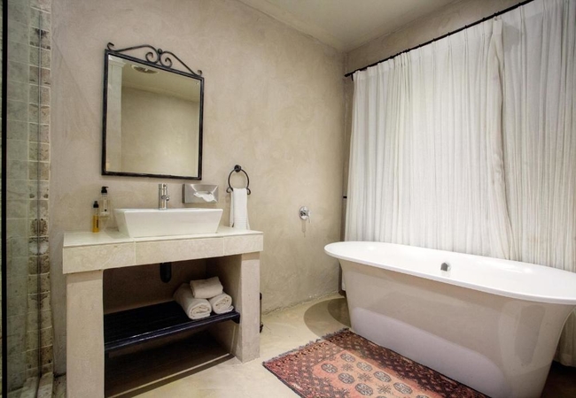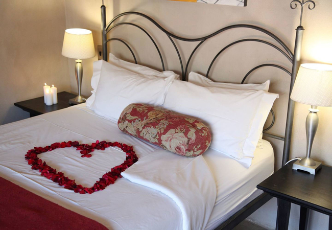 All double rooms offer beautiful wrought iron queen-sized beds comfortably furnished with percale bed linen and luxury chenille throws. En-suite bathrooms are tastefully finished in travertine and dark wood accents and luxury rooms have free standing baths.