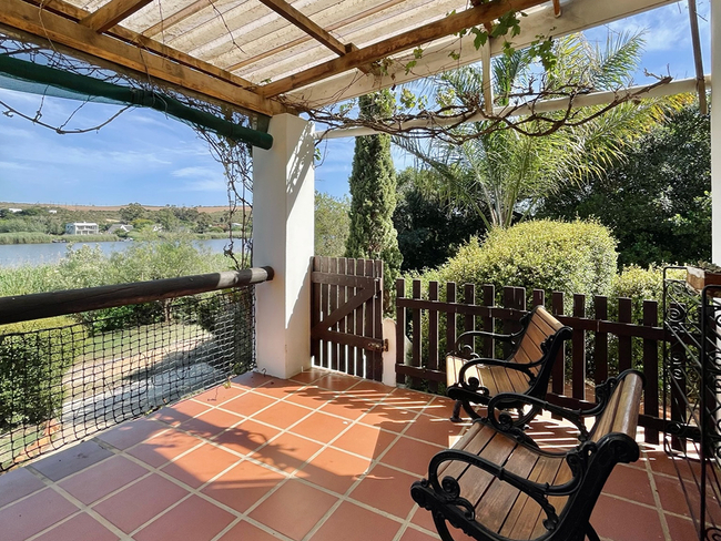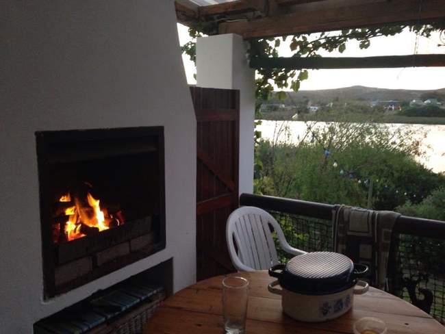 The thatched roof provides natural insulation, keeping the interior cool during summer and warm in winter. The expansive patio and built-in braai offer an ideal spot to enjoy panoramic views of the river, the Potberg mountain, and stunning sunsets, all while keeping an eye on your fishing rods on the nearby jetty.