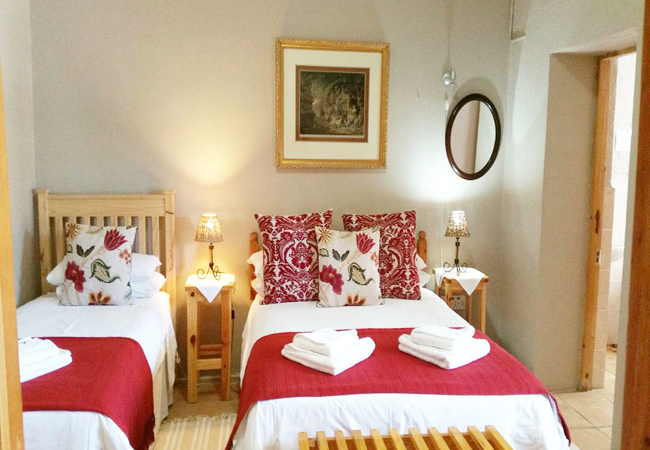 Six en-suite rooms are available at Kambrokind of which one is a self-catering unit called 'The Family Room'. A sheltered outside braai (BBQ), 'Die Tolhuis' with microwave, selected DStv, cutlery and crockery is also available to all our guests. Electric blankets and heaters are provided in winter and of course for the odd cold evening in summer.