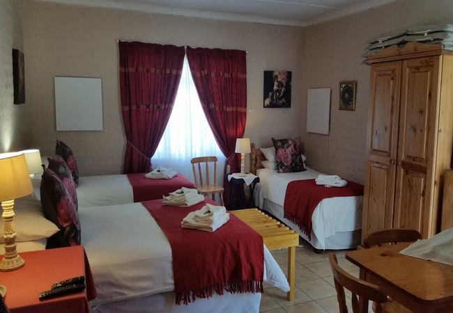 Double and Single Bed en-suite with shower, Communal Lounge and Secured Parking in the back. A sheltered outside braai (BBQ), 'Die Tolhuis' with microwave, selected DStv, cutlery and crockery is also available to all our guests. Electric blankets and heaters are provided in winter and of course for the odd cold evening in summer.