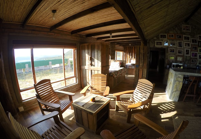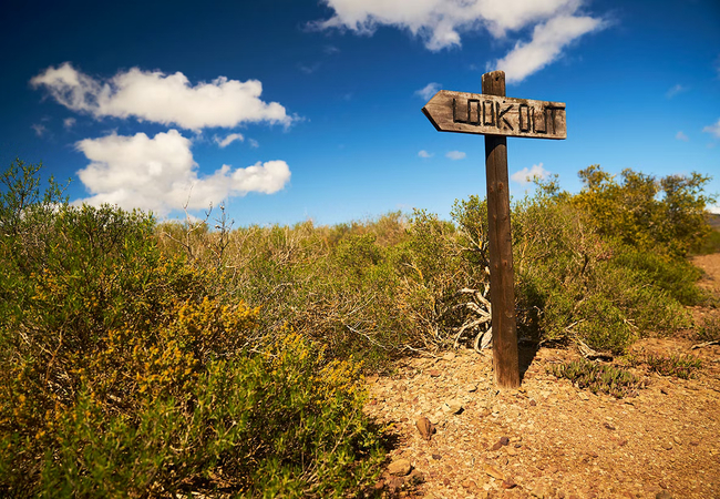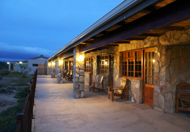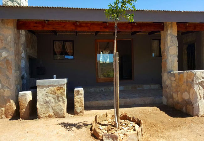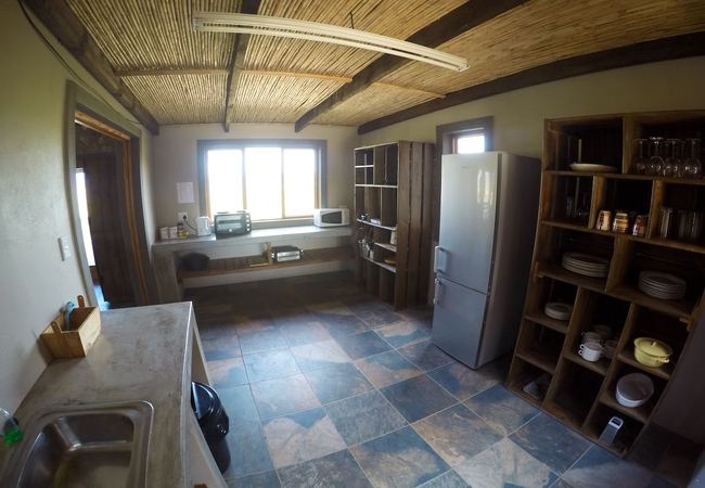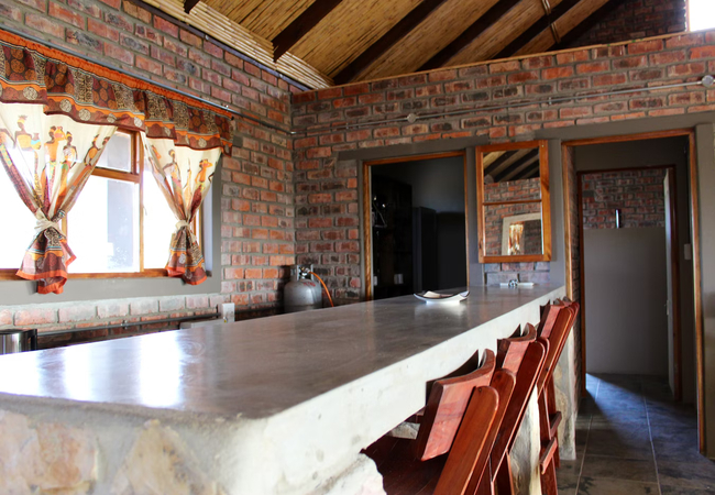 This house comprises 2 bedrooms and 1 bathroom, suited to accommodate up to 6 people. Both bedrooms are furnished with a double bed and the bathroom comes fitted with a shower, toilet and basin. Other in-room facilities include an open-plan kitchen and dining area as well as a lounge area equipped with twin single beds. The house also offers an indoor braai area and a patio with an open braai area offering beautiful views of the mountain and hills. This unit does not offer electricity, however candles and oil lanterns are provided. Please be advised that the road to Sahara is not build for sport motors. We recommend a bakkie.