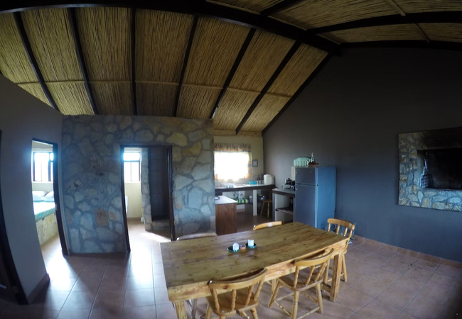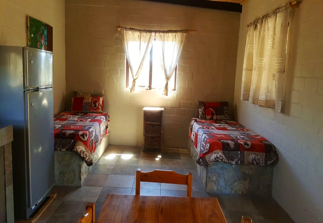 This cottage is suited for 4 guests and comes equipped with 1 bedroom. The bedroom is furnished with a double bed. Other in-room facilities include an open-plan kitchen, a dining room and a living room equipped with twin single beds. There is also outside bathroom fitted with a hot shower, toilet and basin. There are braai facilities. This unit does not have electricity.