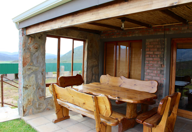 This house is suited to accommodate up to 10 guests. Accommodation comprises 3 bedrooms each furnished with a double bed. There are two bathrooms, 1 fitted with a bath and the other fitted with a shower. The unit features a open-plan lounge with 4 single beds and a kitchen area suited for self-catering purposes. The large open patio consists of a braai area and offers beautiful views of the mountain ranges, vineyards and orchards.