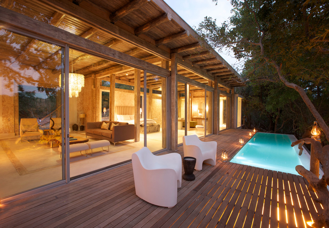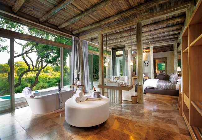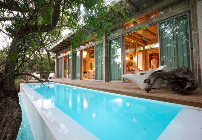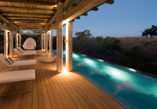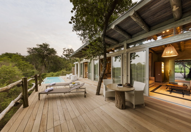 There are ten superior luxury villas, each exquisitely decorated and with generous private space. These suites each have an opulent en-suite bathroom featuring indoor and outdoor showers, his and hers basins and a bath. Standard in each superior villa is a minibar stocked with a selection of fine wines and champagne, a Nespresso coffee machine, a lock-up safe, an international adaptor, a Wi-Fi connection and an iPod docking station. For guest comfort and convenience, each suite has a telephone, overhead fan and air conditioning, as well as a gas-heated fireplace for cool winter nights. The superior villas are wrapped by glass sliding doors, allowing seamless views over the Klaserie River. Each villa has its own outside deck area, full-sized heated swimming pool and sun loungers for relaxation on a private outside deck area with a full-size heated swimming pool and sun loungers for relaxation, enabling seamless views over the Klaserie River while spotting wildlife in the Game Reserve.