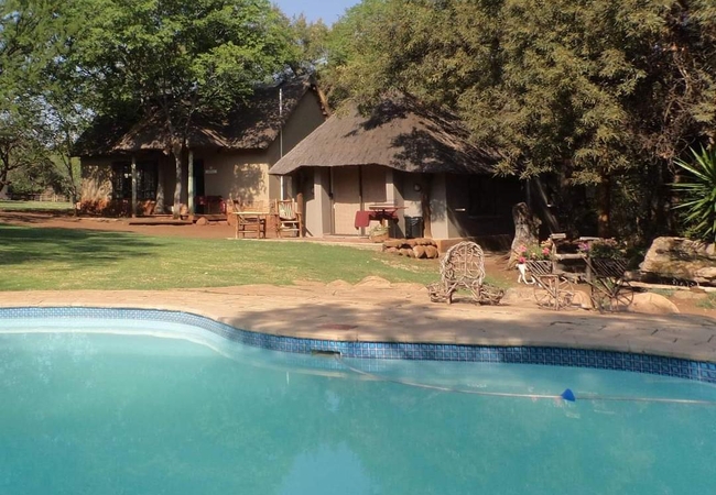 Bushbuck Self Catering Chalet sleeps two guests. The chalet is comfortable, clean and neat with en-suite bathroom with a shower. It has a double bed. The room has its own private entrance and is serviced daily. Room amenities are given. Small basic kitchen with microwave oven, two plate stove, fridge, kettle, toaster, crockery and cutlery. There is a beautiful garden with lawn in front of room and it is 30 m away from the swimming pool. BBQ facility available. Download your preferred programs on your devices before visiting the farm. There is not a TV in the room but about 20 m away from the room is the Lodge Public Lounge with full DSTV.