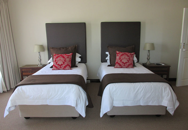 Spacious sunny room furnished with a King-size bed and two single beds. The en-suite bathroom is equipped with a separate shower and bath. Other facilities include air-conditioning, flat screen TV with DSTV, 100 percent cotton linen, safe, coffee and tea making facilities. Free Wi-Fi is available in all the rooms.