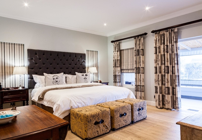 Luxurious two-roomed private cottage set in beautiful surrounding garden. Fully air conditioned, superior finishes, private secure off street parking in your own carport, full DSTV package on big screen TV. Complimentary Wi-Fi. Close to town.