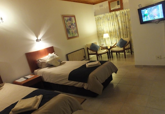 This truly “Home from Home” style hotel offers comfortable accommodation for both the holiday maker and businessman alike. All 47 bedrooms are situated in magnificent garden surroundings, each with its own private bathroom, telephone and TV with limited DSTV and tea and coffee making facilities. Air conditioning/heating is available in the Deluxe category, while Standard rooms all have overhead fans.