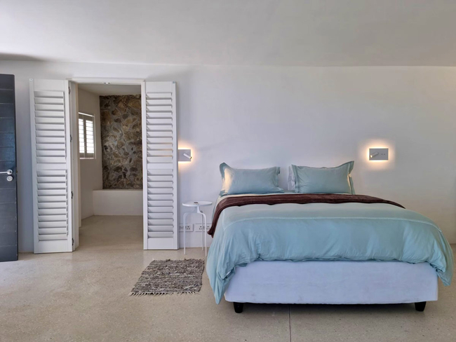 A cosy couch in the living area provides the perfect spot to relax with a morning coffee, or guests can step out onto the private deck to enjoy sweeping views across Gordon’s Bay’s charming old village, stretching across the bay to the distant outline of Table Mountain.