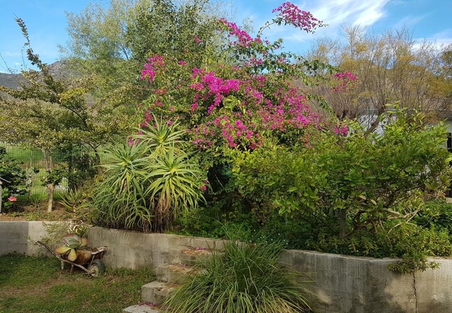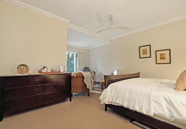 Our luxury, cosy cottage is set in a lush garden filled with the song of a variety of birds in the huge trees around the house. The cottage is equipped with 100% cotton on the Queen-size bed, a bath and a shower and a full functioning kitchenette.