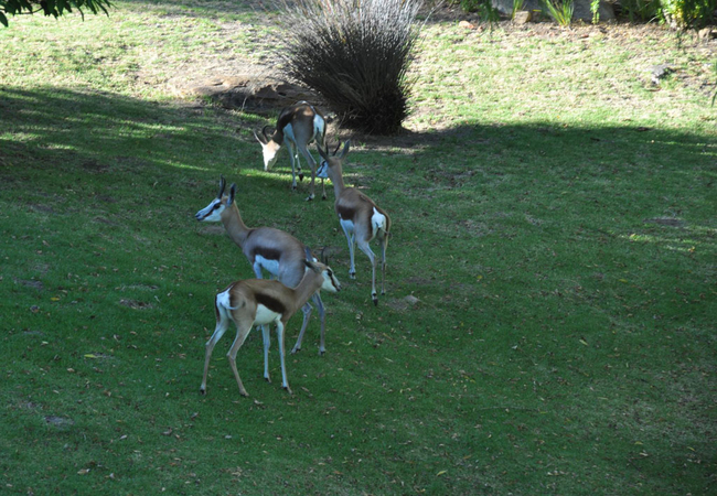 Open the front door, take a seat on the patio and watch wild springbok run past whilst sipping a morning coffee at sunrise.