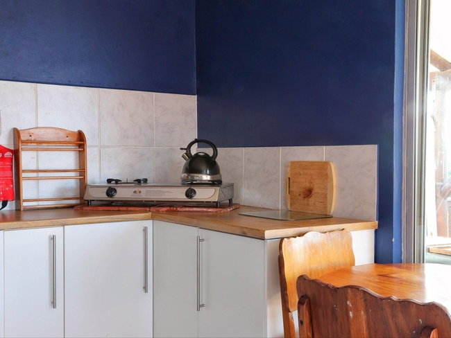 The Loft is a charming two bedroom flat with a shared bathroom, set above the main guest house and hired as a separate unit. It features an open plan kitchenette and sitting area, along with a balcony that offers relaxed views over the river. Guests should note that the unit is accessible by stairs. The flat includes Wi Fi, a television with streaming options, ceiling fans, a dining table and a comfortable sitting space. The kitchenette is equipped with a microwave, refrigerator, stove, toaster and coffee and tea facilities, making it easy to prepare simple meals. Additional conveniences include bathroom amenities, ironing facilities and a regular cleaning service. Outdoors, guests can enjoy the balcony or make use of the patio, outdoor furniture and braai facilities. The Loft is a non smoking space and its river views give it an easy, peaceful charm.