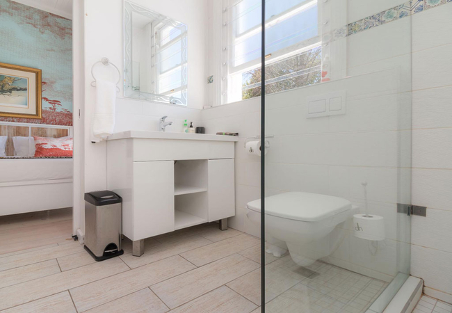 Kelvin Cottage in Gardens has two bedrooms. The master bedroom is furnished with a queen size bed and opens onto the front sunny courtyard and looks onto Table Mountain. The second bedroom has a double bed and opens onto a decked courtyard. There are two bathrooms fitted with a shower, toilet and basin. One of these is en-suite to the main bedroom.