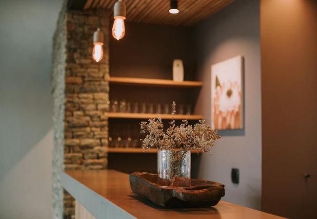 Ideal for 2 people, the air-conditioned Guest Suite opens onto a private verandah with a braai area, overlooking the swimming pool. The room is furnished with a king-size bed and has an en-suite bathroom fitted with a free standing bath, walk-in shower, and a toilet. Each of the rooms has a kitchenette that is fully equipped with a hob, a microwave, a fridge, tea- and coffee-making facilities, and meals can be enjoyed at the dining table. The rooms also have cosy fireplaces, as well as free internet access, and guests have access to a private wood-burning stove with a view of the valley.