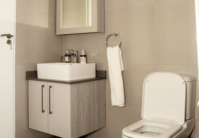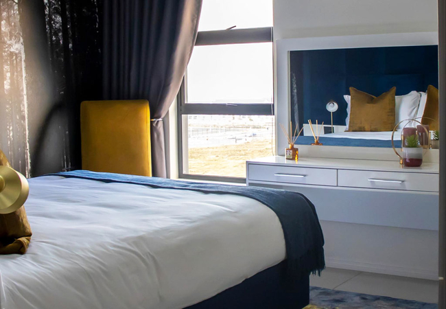 Khayalami is a two-bedroom apartment which can accommodate four guests. Each bedroom is furnished with a Queen-size bed and they share a separate bathroom fitted with a shower, toilet and basin. The open plan kitchen and living area is elegantly decorated and furnished. The kitchen is well equipped for self-catering and includes a dishwasher, oven and gas hob, toaster, microwave, kettle, cutlery and crockery. The unit has free Wi-Fi, Smart TV and a furnished patio.