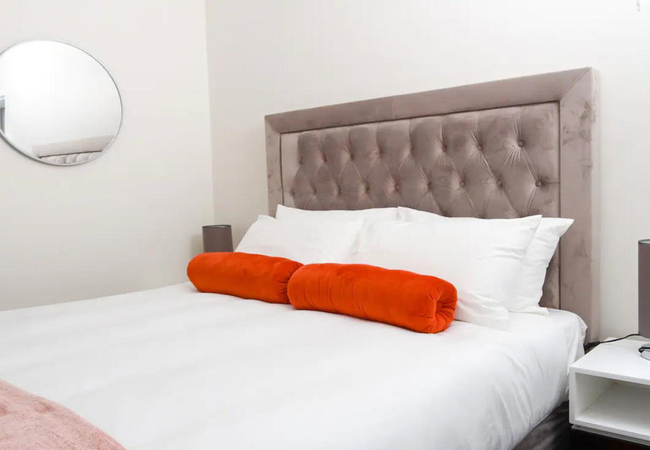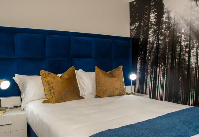 The open plan kitchen and living area is elegantly decorated and furnished. The kitchen is well equipped for self-catering and includes a dishwasher, oven and gas hob, toaster, microwave, kettle, cutlery and crockery. The unit has free Wi-Fi, Smart TV and a furnished patio.