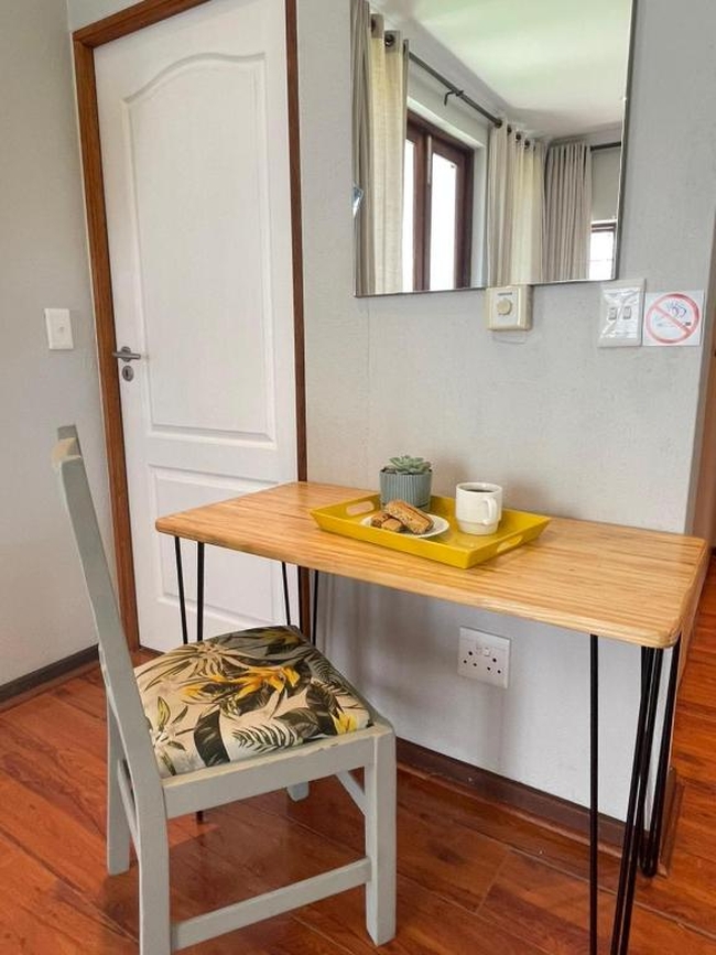 This self-catering room offers flexible sleeping arrangements with twin beds that can be converted into a double, making it ideal for couples or friends. The en-suite bathroom includes a walk-in shower and a selection of complimentary bathroom amenities. Guests can enjoy a well-equipped kitchenette featuring a microwave, bar fridge, and coffee/tea facilities, along with modern comforts such as air conditioning, a work desk, Wi-Fi, and a television with streaming services including Netflix. Step outside to a private patio or balcony with outdoor furniture and tranquil garden views—perfect for enjoying a morning coffee or unwinding after a day of exploration.