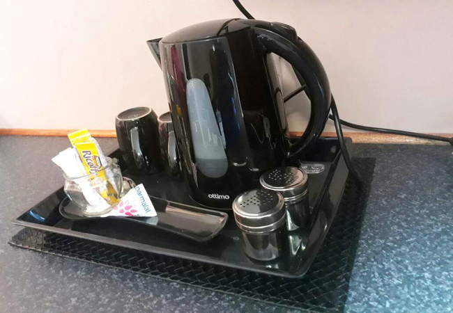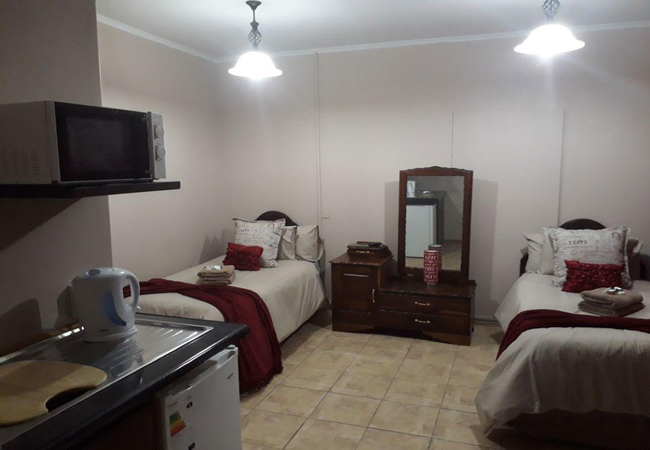The Twin Room is furnished with two single beds. The en-suite bathroom is fitted with a shower, toilet and basin. All the rooms have a kitchenette with a microwave, bar fridge, electric frying pan, complimentary tea / coffee, crockery and cutlery. The rooms have Wi-Fi, TV with Satellite channels and electric blankets.