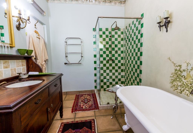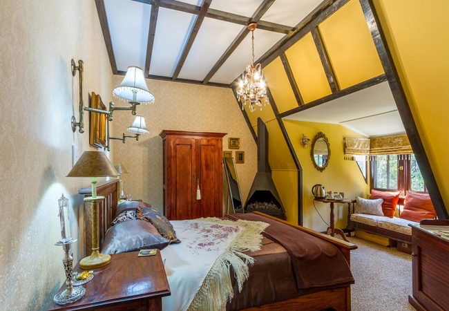 The Queen Deluxe room is furnished with a Queen-size bed and has a full en-suite bathroom. All bathrooms offer heated towel rails. All rooms offer DStv, DVD players and coffee / tea making facilities as well as a mini fridge. In-room gas fireplaces and electric blankets make sure rooms are warm and cosy.