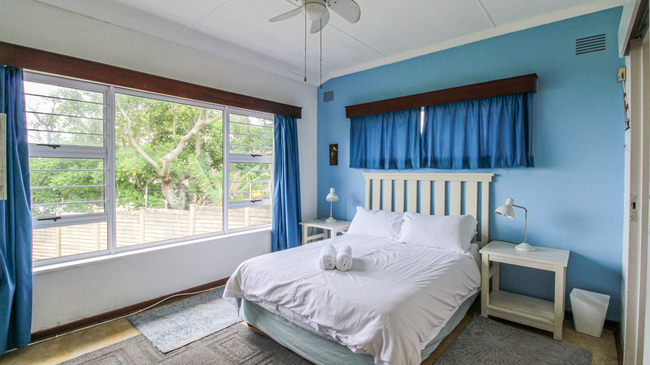 Kimachi can accommodate up to six guests and has three bedrooms, a kitchen, dining area and lounge. The first bedroom contains a double bed. The second and third bedrooms each contain two single beds. There is a bathroom with a shower and bath and an additional bathroom with a shower. The kitchen is equipped for self-catering and includes a stove, oven, microwave, toaster, kettle, cutlery and crockery. The dining area has an eight seater dining table. The lounge contains a TV. Guests need to bring their own standard DStv decoder to watch satelliteTV. Without your decoder there is no TV.