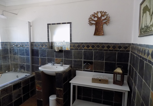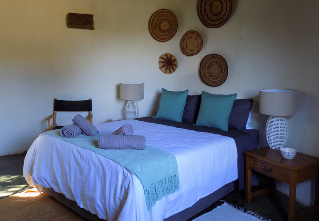 The farmhouse has one bedroom furnished with a Queen-size bed and two bedrooms furnished with twin beds. There is a bathroom fitted with a shower, toilet and basin. The rondavels are each furnished with double beds and have en-suite bathrooms fitted with a shower, toilet and basin.