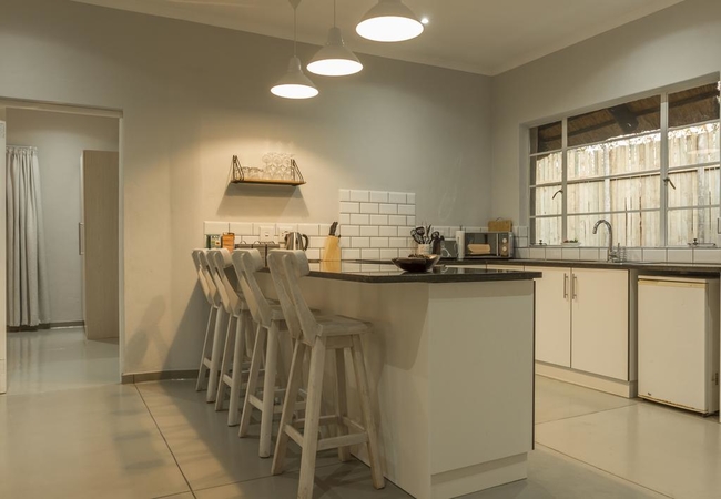 This charming two bedroom cottage sleeps five guests comfortably. The first bedroom has one large double bed and a single bed. The second bedroom has an extra large double bed. The master bathroom has bath and a shower. The second bathroom has shower. The cottage has a fully equipped kitchen and a thatched roof provides shade from the heat allowing outdoor dining throughout the year. The cottage has a private braai area which looks out onto the bush where giraffe, zebra, antelope and occasional buffalo can be seen grazing.