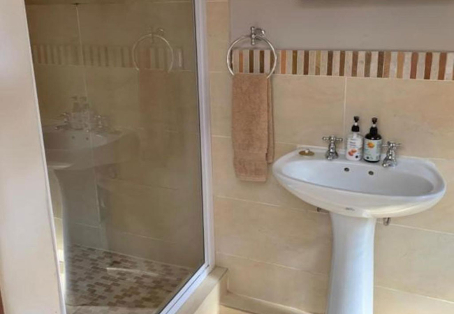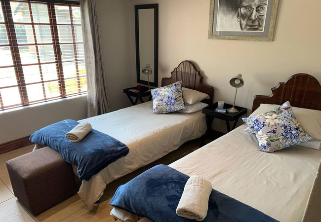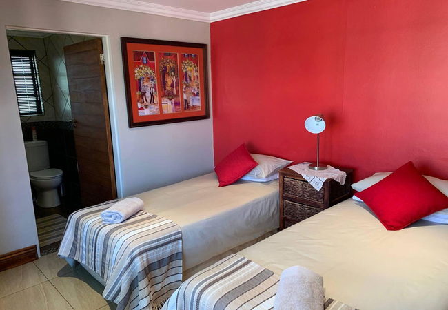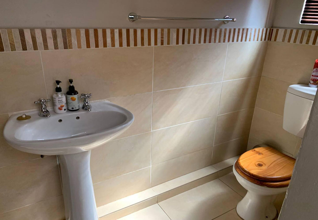 Kleinbos Cottage Holiday Home in Bloemfontein has three bedrooms, one furnished with a double bed and two furnished with two single beds each. There are two en-suite bathrooms fitted with a shower, toilet and basin.