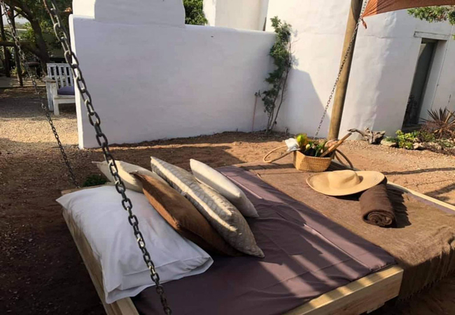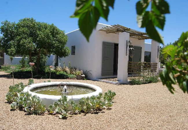 Klein Gelukkie Cottage is a self catering holiday cottage in Paternoster sleeping two guests. The bedroom is furnished with a King-sized bed dressed with beautiful crisp linen. The bathroom is fitted with a shower, basin and toilet. The cottage has an open plan living area with comfortable seating, a fireplace and a dining table. The kitchen is well equipped for your self catering stay. The cottage has a private landscaped garden which includes BBQ facilities and a lovely day bed for lazy, romantic afternoons.