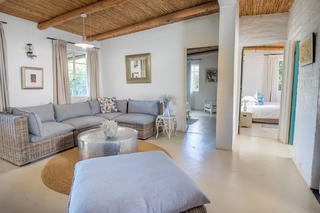 This charming privately positioned cottage with farm style look and feel has two bedrooms, one bathroom with shower only, open plan kitchen/dining/lounge and a stoep with a spectacular deep shaded wrap around terrace.