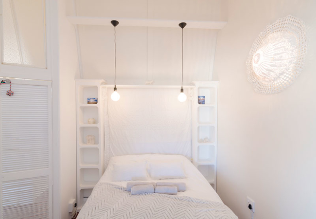 The unit sleeps two adults or a family of four. It has a main bedroom furnished with a double bed and a second smaller bedroom furnished with a sleeper couch that can be converted into a double bed. The bathroom has a spacious walk-in rain shower as well as a toilet and basin.