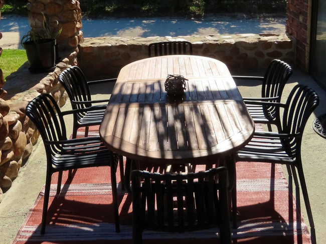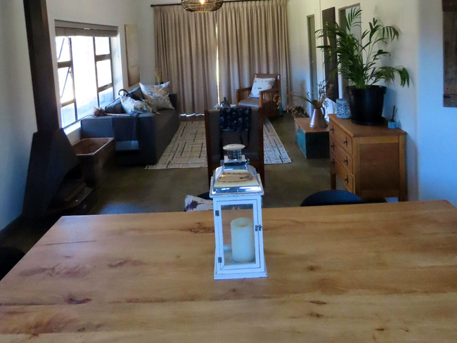 From the living area, a wide wraparound patio opens onto expansive views of the surrounding mountains. A built-in braai area provides the perfect setting for relaxed outdoor meals while enjoying the quiet beauty of the valley.