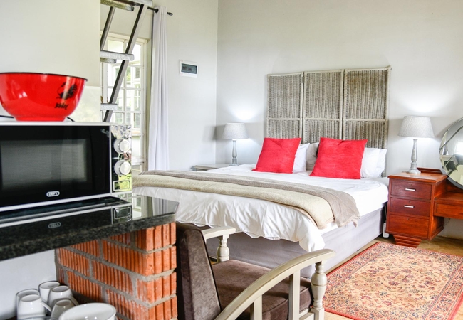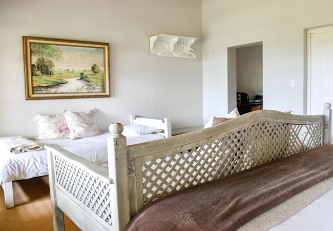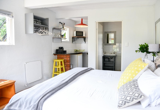 The Groenekloof 4 Family Room is suitable for a maxumum of five guests. The unit is furnished with a king-size bed, 2 single loft beds, 1 single day bed. There is an en-suite bathroom and a kitchenette in the unit. All the rooms are tastefully decorated with stunning views over the forest and mountains.