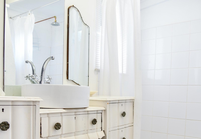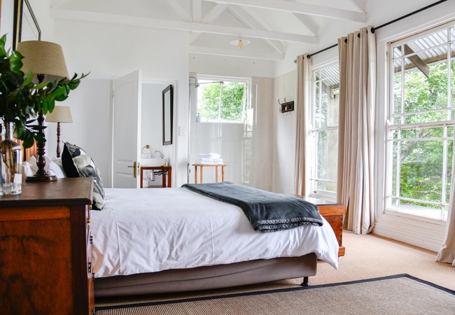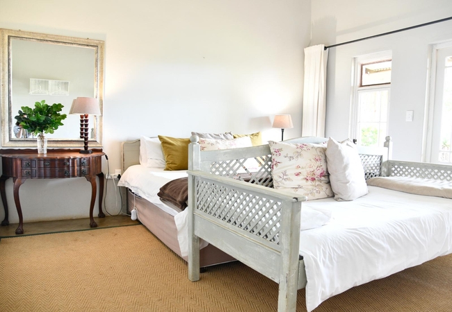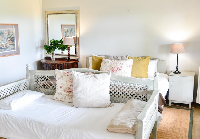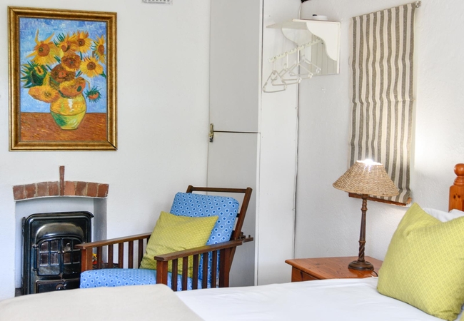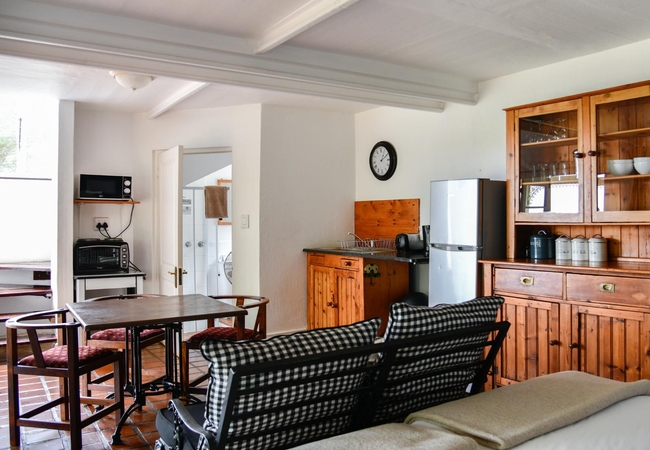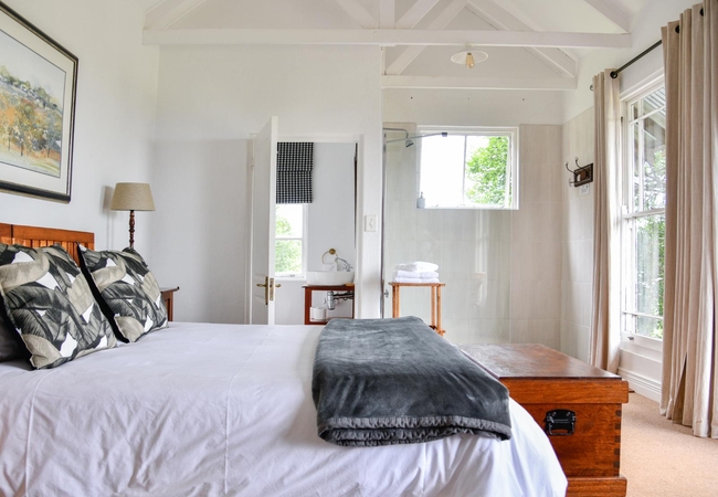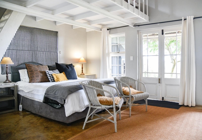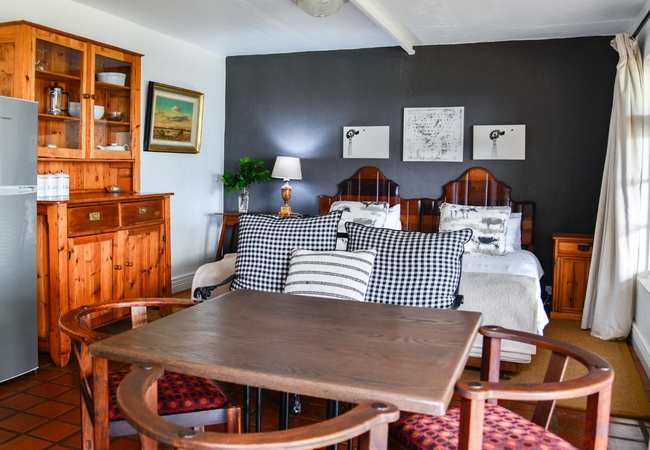 The Creamery Upper Room has a bedroom upstairs furnished with king or twin beds (sleeps two guests) and an en-suite bathroom fitted with a shower, toilet and basin. Downstairs there is are twin beds, a bathroom and an open plan kitchenette. There is a patio with braai facilities.