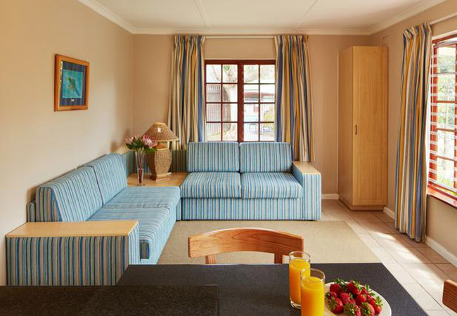 Close by, the Knysna lagoon is a pristine haven for fishing, water skiing, windsurfing, sailing, paddling or a relaxing sightseeing cruise. The Knysna Heads is one of the most famous features along the entire Southern African coastline and the Knysna oysters are famous all over the world. The resort has a games room, children's playground and swimming pool.